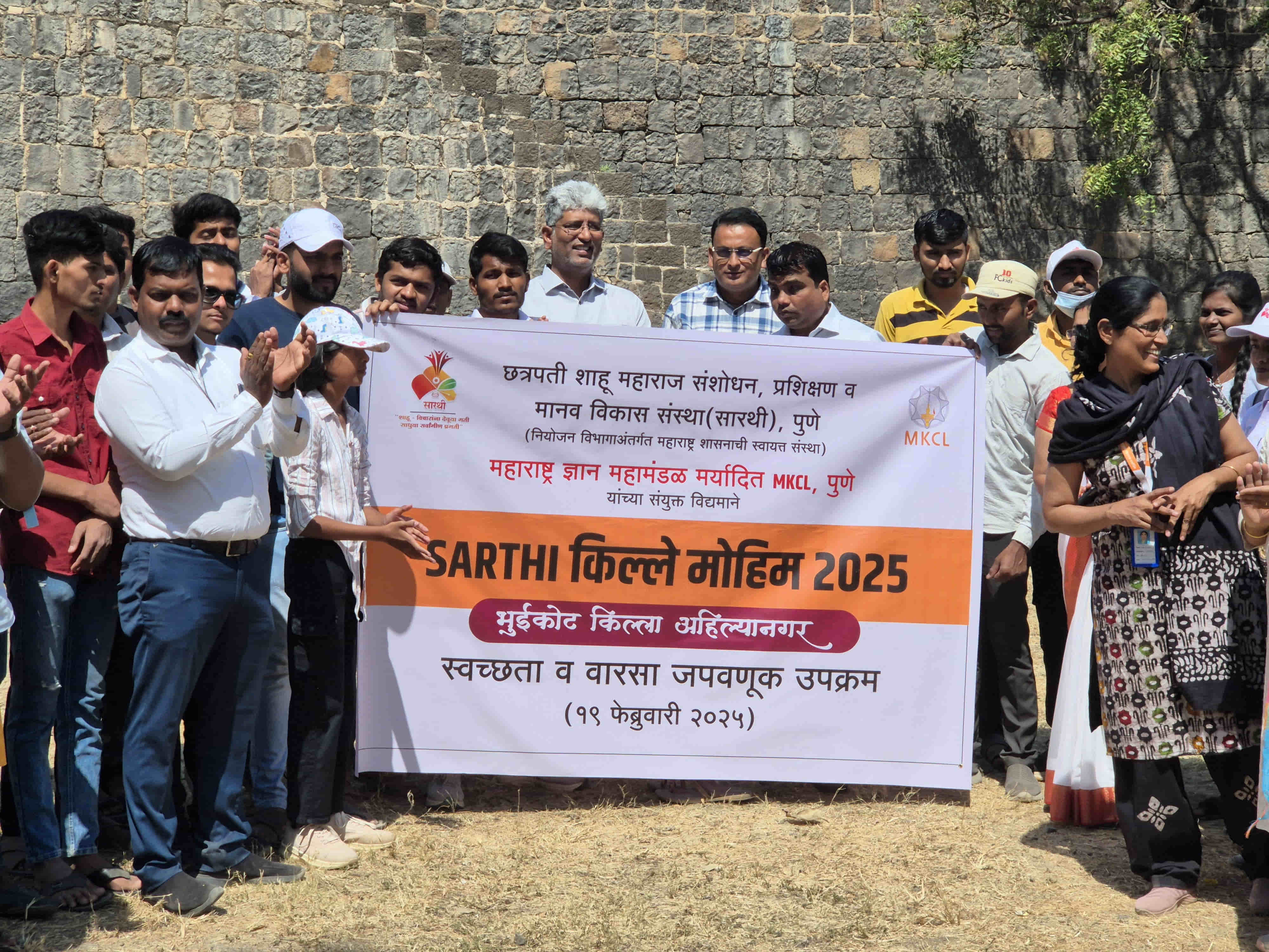 छत्रपती शिवाजी महाराजांच्या जयंतीनिमित्त १९फेब्रुवरी २०२५ रोजी सारथी व MKCL यांच्या संयुक्त विद्यमानाने किल्ले स्वच्छता अभियान राबविण्यात आले